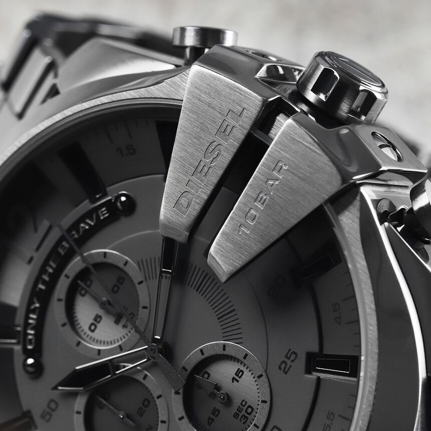 A Diesel ismert divatmárka, amely bátran épít a márkanevére. A hagyományos órakészítéstől meglehetősen távol áll, de a modern megjelenés ezekről az órákról biztosan nem hiányzik. Az üveg fölé nyúló, jellegzetes elem külön karaktert ad az Only the brave kollekció minden modelljének. És meg kell hagyni, igencsak találó szlogenről van szó.