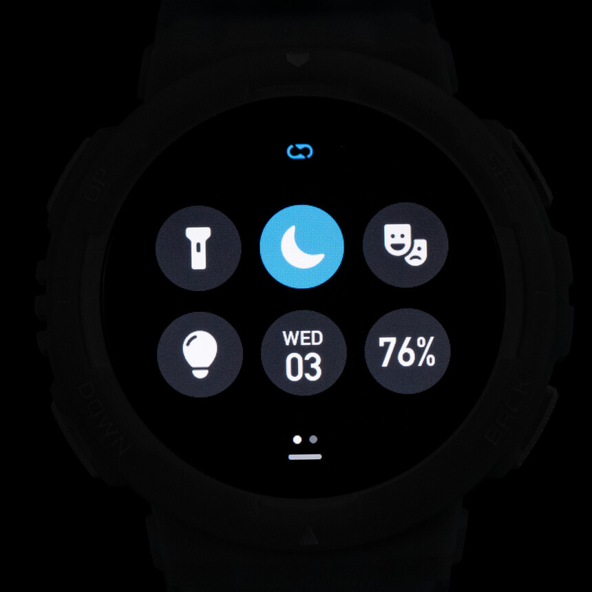 Az okos funkciók itt alapszintűek. Kaptunk értesítéseket az üzenetekről, hívásokról és a szocreálról. Hálózatok, stopperóra, ébresztő, időjárás és csak a hasznos alapok. Nem, ne keressünk telefonhívásokat vagy fizetéseket. Egészen érdekes a fizetős Aura alkalmazás, ahol a megfelelő alváshoz egy speciális, csak Önnek készült AI chateléssel ellátott dallal jöhet ki. Hogy működik-e vagy sem, valószínűleg sosem fogjuk megtudni, de mindenképpen érdekes.