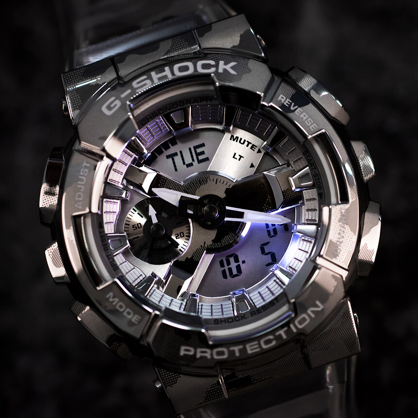 Hogy tetszik a Hundred Nines fémes reinkarnációja, de az arany nem egészen az Ön stílusa? Nem baj... Ahogy az a G-Shockoknál megszokott, a GM-110-esek sem korlátozódnak egyetlen színválasztékra. Van egy ezüst-fekete (GM-110-1AER), egy ezüstszínű, terepszínű mintával ellátott (GM-110SCM-1AER), és talán egy érdekes "Rainbow" változat kéttónusú szíjjal (GM-110RB-2AER), szóval biztosan van miből válogatni.