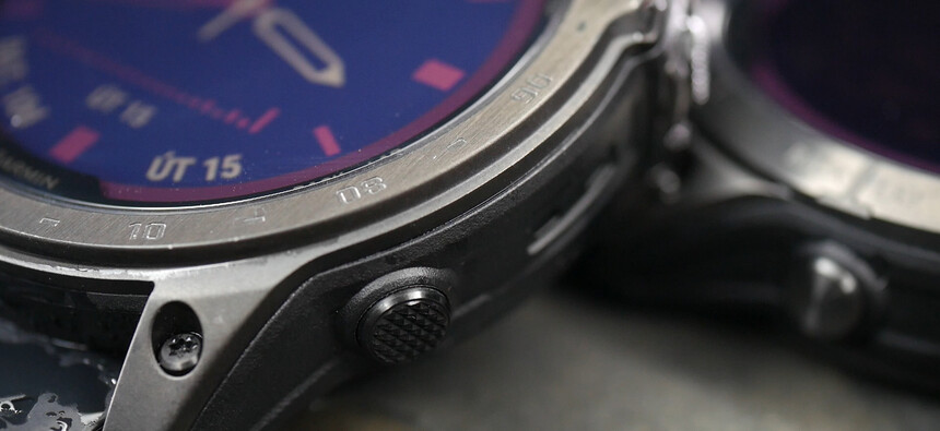 És kérdezem, mint mindig: "Miért változtassunk meg valamit, ami működik?" Szerintem a Garmin nagyon jól tette, hogy szinte semmit sem változtatott a Tactix 7 kinézetén. Amit viszont kifejezetten nagyszerűen csináltak, az az, hogy a lünette és a hegy anyagát titániumra cserélték. A lünettát most már a lábakra is kiterjesztették, így a titán eltakarja a lábakon korábban látható műanyagot. A tok aztán természetesen műanyag marad, hogy a súly ne szökjön az egekbe. Az előző generációhoz képest csökkent, és a rafia megállt 89 grammnál. A szilikonnal paradox módon 7 g-mal könnyebbek, mint a kemény nejlonnal.