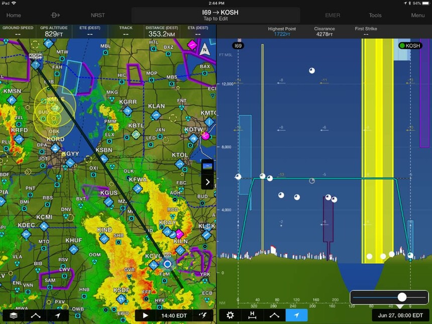 Az első repülési funkció az időjárás funkció. Az időjárásjelentések közé tartozik a NEXRAD radar, a METAR-ok és a TAF-ok. Mindhárom rendszer rendszeres jelentéseket készít az időjárásról, szélről, nyomásról stb. A jelentések legtöbbször óránként egyszer érkeznek. Ha az időjárás hirtelen változik, akkor ezért speciális SPECI jelentések készülnek.
