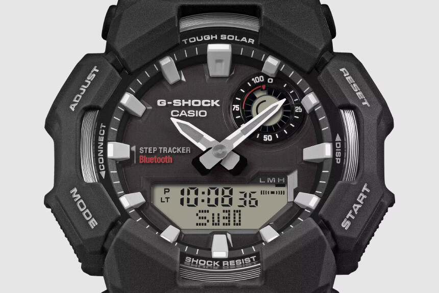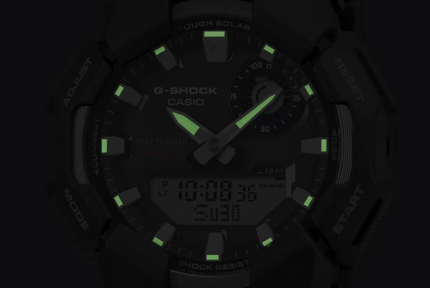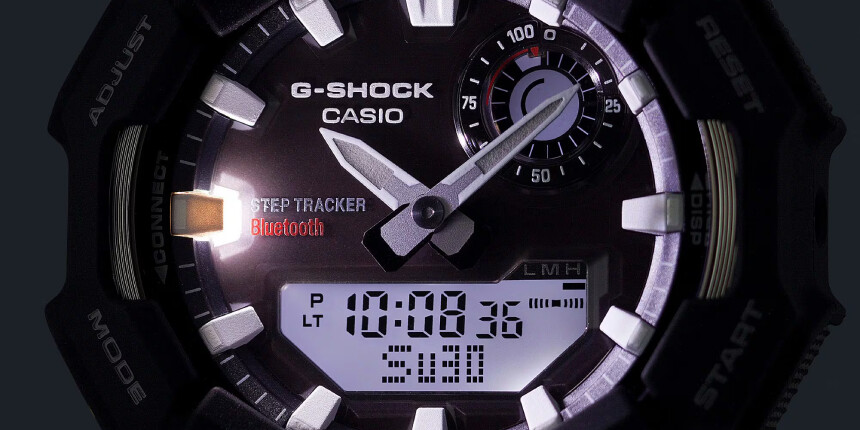 A GA-B010 a gyorsulásmérőt, a Bluetooth-t és a napelemes cellát is megkapta. Ezek mind pluszt jelentenek a GA-B010-ben az említett elődmodellhez képest. Logikusan azt gondolnánk, hogy így nagyobb is lett, hiszen ezek a technológiák helyet követelnek a tokban. Az ellenkezője igaz. A Casio sportórának szánta a modellt, ezért kifejezetten kompakt méretre tervezte – ennek megfelelően csökkentették a méreteket.