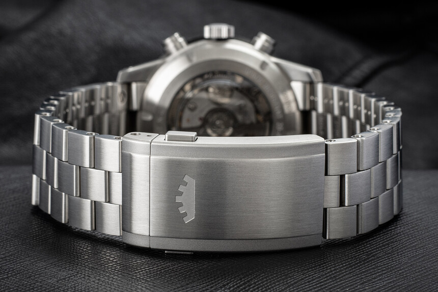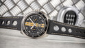 A vízállóság 100 méter, és az óra markánsan steppelt fekete borjúbőr szíjon érkezik. A német óra és a német veterán párosítása ízléses és átgondolt, de a figyelmet maguk az órák ragadják meg. Már csak olyan részletekkel is, mint a másodperc-segédszámlapba integrált dátumkijelzés vagy az ívelt percmutató.
