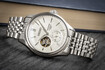 A 2025 őszének elején bemutatott újdonság átgondolt esztétikát ötvöz órásmesterek munkájával. Letisztult számlapja nemes hatást kelt, kellemes kontrasztban a kék mutatókkal. A járástartalék-kijelzés és a gyöngyház tárcsás holdfázis érdekes komplikációkat kínál, anélkül hogy megbontaná az óra összhatásának minimalizmusát – itt még a másodpercmutatót is elhagyták.
