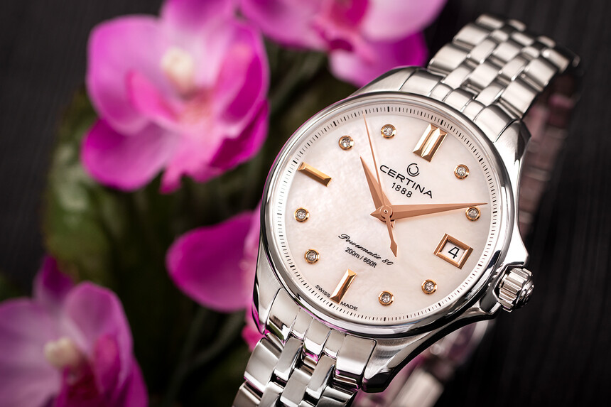 A második ajánlásunk a középkategória bestseller márkája, a Certina. Az Aqua kollekció modellje nemcsak gyönyörű, nőies és elegáns, hanem praktikus is. Nagy vízállóság, teljes acélkivitel, zafírüveg – így az órát nem kell levenni a mindennapok során.