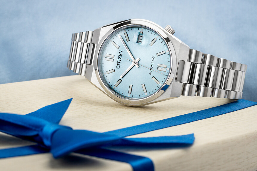 Ha olyan hölgynek választ, aki érdeklődik az órák iránt, a japán Citizen Tsuyosa egyik legnépszerűbb modellje biztosan örömet szerez. Mi a kisebb méretet ajánljuk baby blue vagy időtlen púderrózsaszínben.