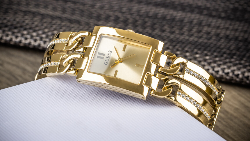 És ha csupán egy Guess-modellt választhatnánk, az a dupla karkötős, szögletes arany óra lenne – igazi divatcsemege.