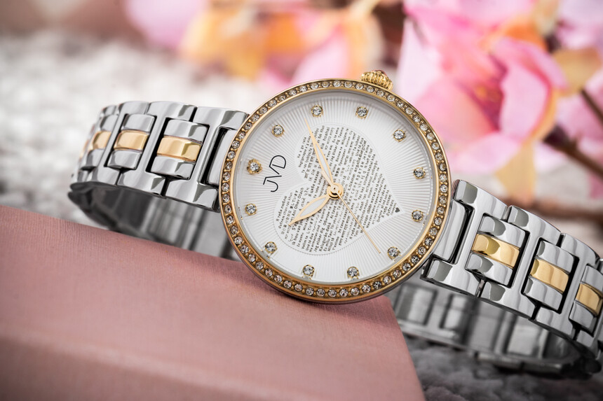 És még egy példa a JVD márkától. A számlapon a „Szeretlek” felirat sok világnyelven olvasható.