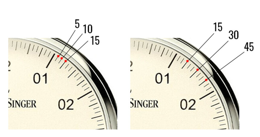 A mutató (leggyakrabban) 5 perces intervallumokat mutat. Ha a 12-re merőleges, akkor az igazi dél/félóra, ahogyan azt az óráknál megszoktuk, ahol óra- és percmutató is van.