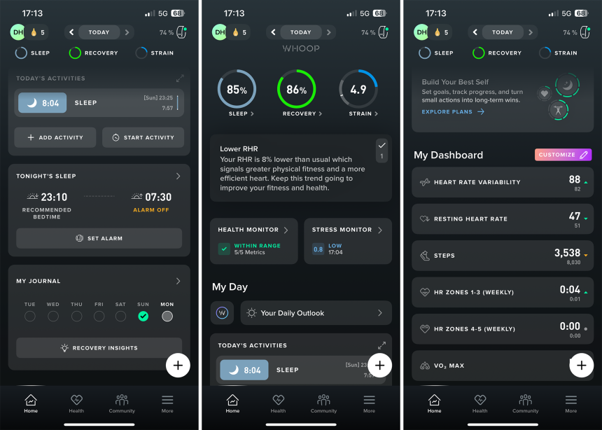 A Whoop 5.0 MG változata EKG-t is kínál, és továbbfejlesztett alvás- és HRV-algoritmusokkal dolgozik.