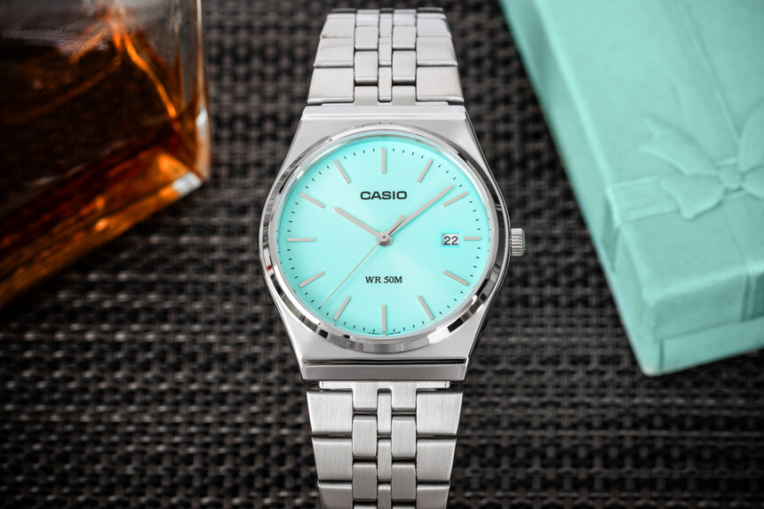 És csak a rend kedvéért: a Casio LTP-B165-től vannak abszolút szenzációs retró szögletes modellek, szintén Tiffany színben (de más színekben is), amelyek egy másik óramárkára emlékeztethetik az óraértőket. De mindegy, 30 ezer alatti áron vétek lenne nem megvenni.