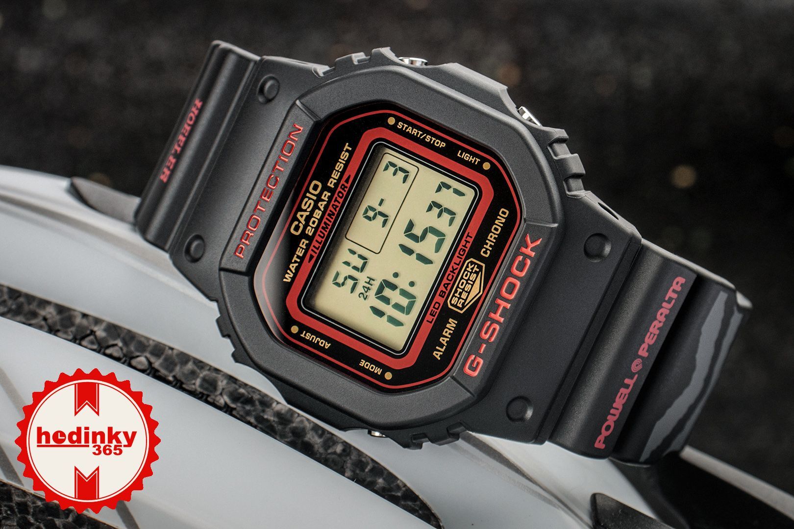 Ma a kevéssé használt EL világítás, amely gyönyörűen megvilágítja a teljes digitális kijelzőt + a gyantát, amelyből az óra készült, számos együttműködés előtt nyitja meg az utat. A logó például elrejthető a digitális kijelző alá, amely csak akkor jelenik meg, ha a háttérvilágítás be van kapcsolva. A gyanta ezután végtelen színkombinációs lehetőségeket kínál. A modellt számtalan különböző változatban láttuk már.