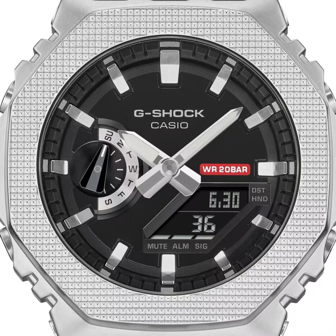A GM-2100-as modellek neve metalOak. Az ok nyilvánvaló. Ezek a népszerű G-Shocks GA-2100-as, minden idők egyik legsikeresebb modelljén alapulnak. Becenevüket a nyolcszögletű lunettának köszönhetően kapták, amely az Audemars Piguet világhírű Royal Oak-jára hasonlított, így a GA-2100-as modellt senki sem fogja másnak hívni, mint CasiOaknak.
