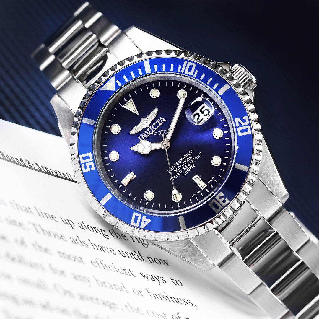 Az Invicta Pro Diver meglep a kivitelezés minőségével. A teljesen acélból készült tok a csiszolt és a polírozott felületeket ötvözi. Hasonlóképpen a klasszikus osztrigás karkötő csiszolt középső és oldalsó vágott láncszemekkel. A csat biztonsági zárral és Invicta aláírással ellátott, átfordítható csat. A tökéletes illeszkedés érdekében a csuklón egy mikrobeállítás is található, így a karkötő méretét az Ön igényeihez igazíthatja.