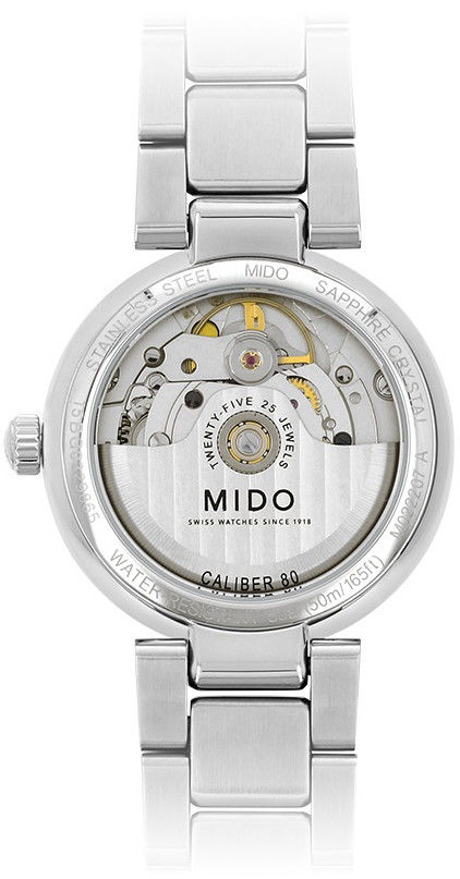 Mechanikus, automatikus tekercseléssel. Mido Caliber 80 építve a ETA C07.621 építve a ETA 2836-2 építve a ETA 2824-2, Teljesítménytartalék 80h, 21.600 BPH (3Hz), 25 köveket