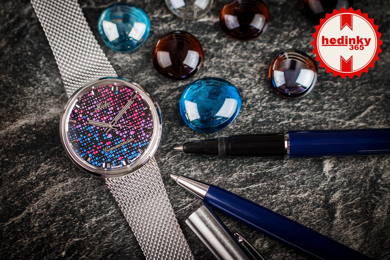 Mechanikus, automatikus tekercseléssel. Mido Caliber 80.621 építve a ETA C07.621 építve a ETA 2836-2 építve a ETA 2824-2, Teljesítménytartalék 80h, 21.600 BPH (3Hz), 25 köveket