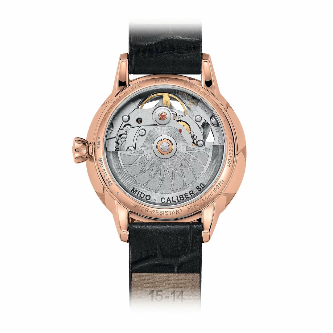Mechanikus, automatikus tekercseléssel. Mido Caliber 80.631, Teljesítménytartalék 80h, 21.600 BPH (3Hz), 25 köveket