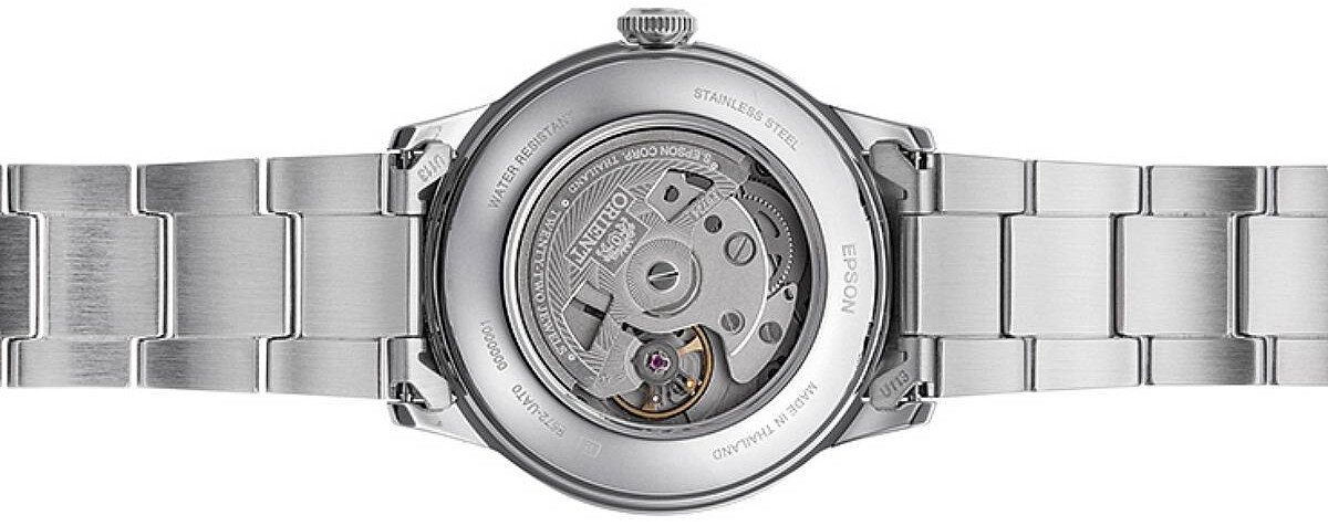 Mechanikus, automatikus tekercseléssel. Orient F6724, Teljesítménytartalék 40h, 21.600 BPH (3Hz), 22 köveket, Hackelés, Kézi felhúzás lehetőség