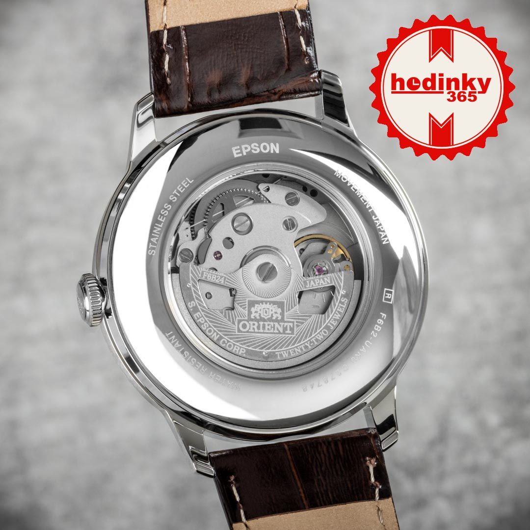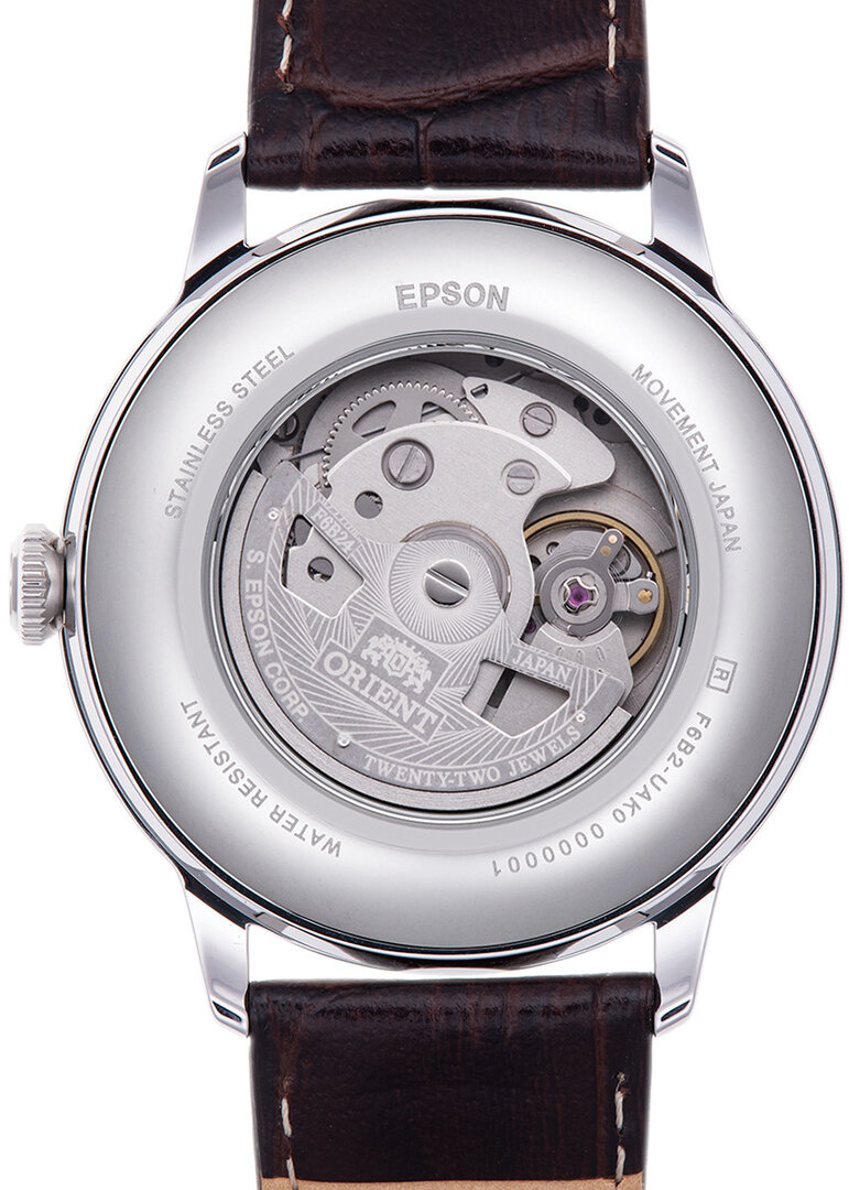 Mechanikus, automatikus tekercseléssel. Orient F6B24, Teljesítménytartalék 40h, 21.600 BPH (3Hz), 22 köveket, Hackelés, Kézi felhúzás lehetőség, Kétoldalas felhúzás