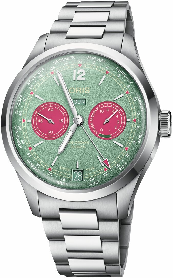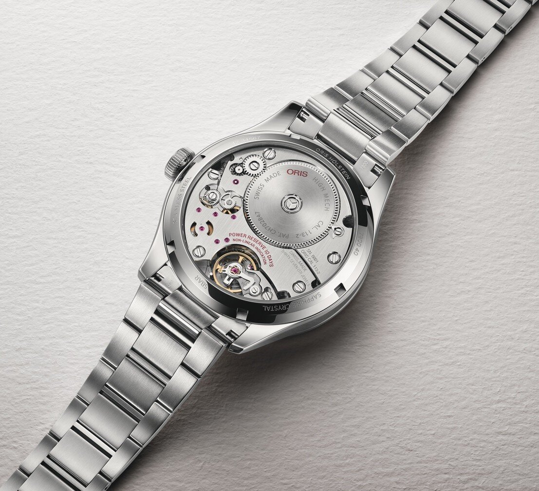 Mechanikus kézi felhúzás. Oris 113, Teljesítménytartalék 240h, 21.600 BPH (3Hz)