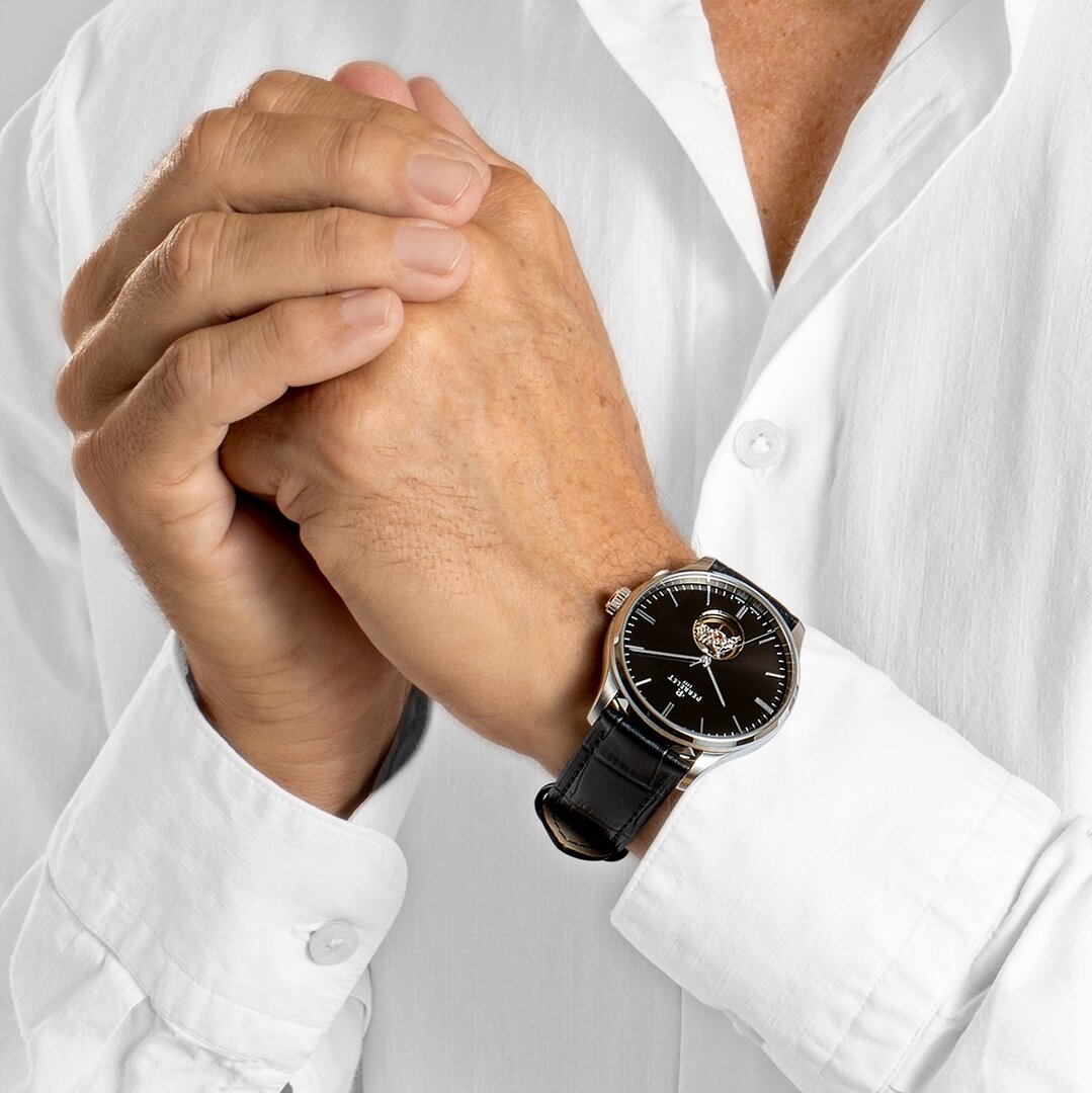 Férfi karóra - bőr karkötő, acél tok, zafír üveg. Az összes műszaki adatot lejjebb találja